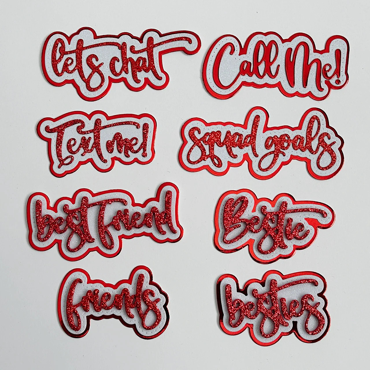 Add playful personality to your projects with our 24-piece Best Friend Sentiments Die Set from Scrap Diva Designs. Featuring popular phrases like Best Friends, Squad Goals, Besties, Let’s Chat, Call Me, Text Me, Bestie, and Friends, this versatile word set is perfect for cards, mini albums, memory keeping, and friendship-themed projects. Designed to cut cleanly and coordinate beautifully with your handmade creations.